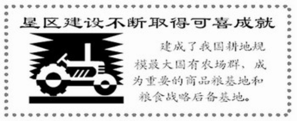 500个管理区。按照新农村的标准规划建设。功能定位:农场基层居民生产生活聚居区,基层群众文化活动中心,商品粮生产基地,优质畜产品生产基地。