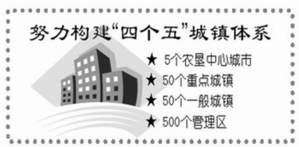 (一)农场城镇化建设目标任务。要紧紧抓住机遇,按照规划布局合理、城镇规模适度、具有北方园林特色、能够集聚产业要素、辐射带动农村发展的要求,努力构建“四个五”城镇体系,即5个10万人口以上农垦中心城市,50个2万人以上的重点城镇,50个1万人以上的一般城镇,500个1000人以上的管理区,增强农垦城镇集聚产业和吸纳人口功能,加快构建城乡一体化先行区。坚持区域发展一体化原则,通过深入开展合作共建,大力创新合作机制,不断拓展共建领域,实现社会公共资源共享,形成农垦带动地方、地方支持农垦、垦地一体化发展新格局。