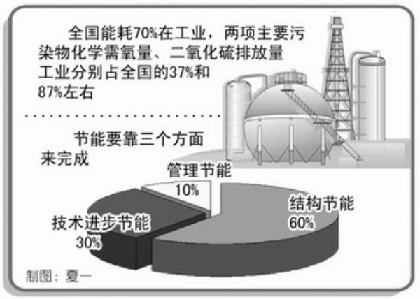 节能要靠三个方面来完成:结构、技术和管理节能。结构节能是长期的,管理节能是有限的,加快工业技术进步,大力推广节能先进技术,大幅度降低单位产品能耗,是当前和今后相当长时期工业节能的主攻方向。
