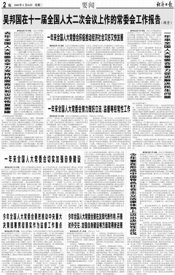 吴邦国在十一届全国人大二次会议上作的常委会工作报告