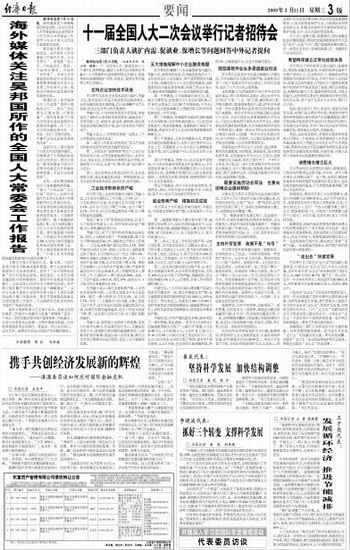 海外媒体关注吴邦国所作的全国人大常委会工作报告