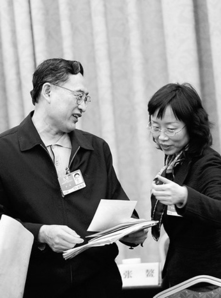 左图 3月11日上午,政协委员小组讨论两高工作报告和各项决议草案,科协界的齐让委员(左)和同组委员交流发言意见。本报记者 赵 晶摄
