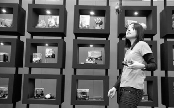 在德国2009年汉诺威信息通信技术博览会中国展区,一名工作人员在展示USB动力电脑玩具。当天,汉诺威信息通信技术博览会向公众开放。 新华社发