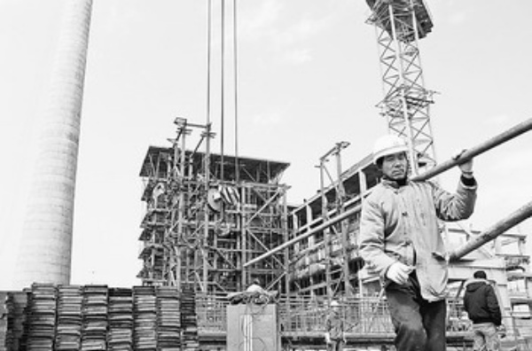 2月20日,工人在江西省鄱阳县凯迪生物质能电厂建设工地忙碌。