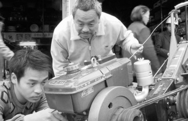 国家补贴农民购置农机的政策激发了江西省瑞金市农民购买农机备春耕的积极性。图为瑞金市黄柏乡黄坑村村民廖恒远在一家农机具配置中心选购耕田机。本报记者 廖国良 通讯员 梁海洋摄影报道