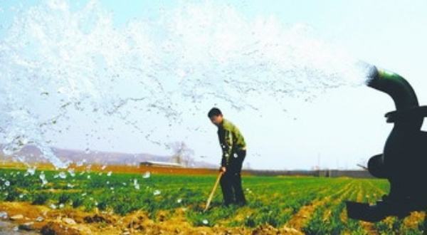 3月19日,河北省赞皇县许亭乡一农民正在浇灌冬小麦。时下,河北省冬小麦正处于返青季节,农民开始给冬小麦施肥、浇水,确保春苗长势良好。