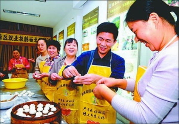 阳明街道舜水社区,居民正在进行包饺子比赛。舜水社区以楼道节为载体,开展和谐文明、牵手邻里、情满舜水等活动,居民相处融洽,社区和谐安定。