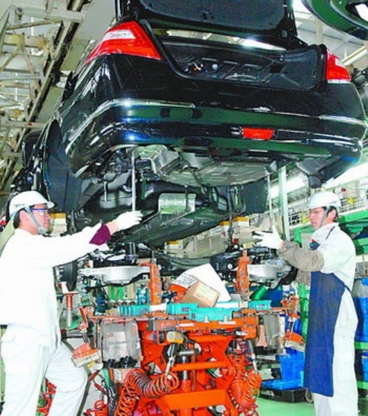 湖北省是我国重要的汽车产业基地之一。在东风汽车集团汽车生产线上,工人们正在组装汽车。 本报记者 李树贵摄
