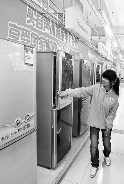 云南省家电下乡活动在玉溪市启动后,当地及时成立了家电下乡物流配送中心,将家电产品送到农村各销售点,方便农户选购,吸引了广大农村消费者积极购买。新华社记者 陈海宁摄