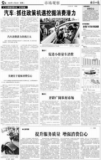 提振市场信心,政策要“鼓劲”。《汽车产业调整振兴规划》中强调,“加快汽车产业调整和振兴,必须实施积极的消费政策,稳定和扩大汽车消费需求。”徐长明分析说,这强烈传递出鼓励汽车消费的信息,让消费者精神为之一振,对提振消费者的信心意义重大。