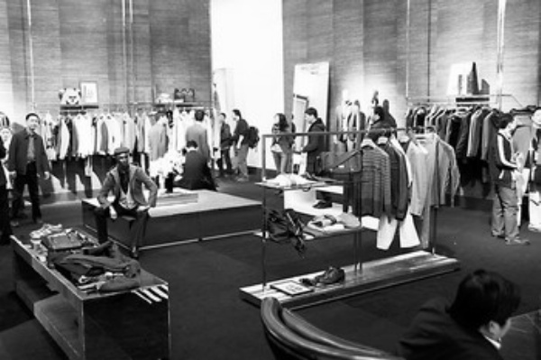 3月28日,正在中国国际展览中心新馆举办的第十七届中国国际服装服饰博览会受到广泛关注,以经典男正装和商务男装为主的男装展区吸引了不少观众。图为波司登男装展区一角。 应晓娟摄