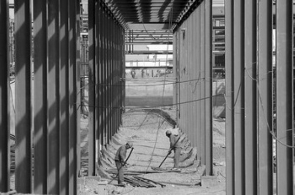 迪那2气田位于新疆南部的库车县和轮台县境内,累计探明天然气储量1752.18亿立方米,凝析油1338.9万吨,是中国目前发现最大的凝析气田。该气田于2008年3月26日开工建设,计划将于2009年6月30日投产。气田建成后可年产天然气50亿立方米、凝析油56万吨,油气当量450万吨。新华社记者 邢广利摄
