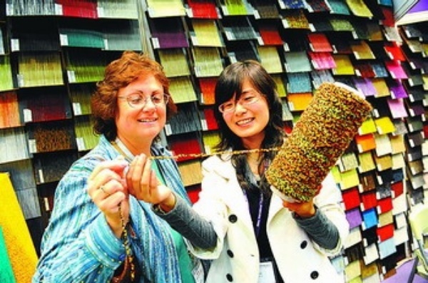 3月30日,参观者在纺织纱线展台仔细挑选样品。当天,为期3天的中国国际纺织纱线(春夏)展览会在京开幕。本届纺织纱线展展位面积总计1100多平方米,有近百家国内外知名企业参展。本报记者 赵晶摄