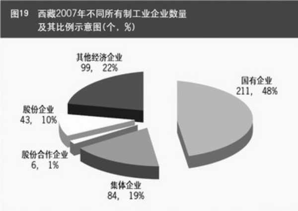 已建立起多元化的市场。除各地纷纷兴建的商品市场外,在拉萨市等大中城镇还出现了专业化的生产资料市场、人力资源市场和证券市场。市场在资源配置中开始发挥基础作用。企业已开始成为具有自主经营权的市场主体。从1959年西藏实行民主改革到1984年西藏改革开放的25年时间里,西藏的工业发展由国有和集体企业一统天下,1985年西藏才出现第一家其他成分的工业企业。而到2007年,非国有和非集体成分的工业企业已发展到148家,其产值已占工业总产值的近60%,在西藏的工业企业中占举足轻重的地位,这类企业的经营完全由市场调控。即便是公有制企业的生产和经营也不像过去完全受政府指令计划的调配,也在遵循市场法则并接受市场调配(注27)。