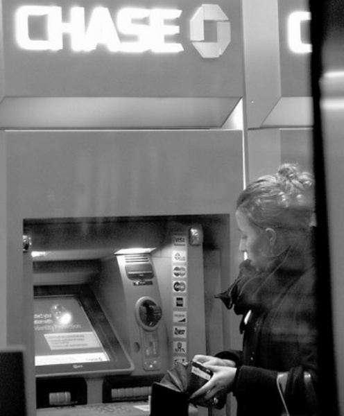 3月6日,一名市民在美国纽约的一处摩根大通银行取款机前取现。“借贷消费”、“快乐刷卡”早已是美国人习以为常的生活方式。新华社记者 刘欣摄