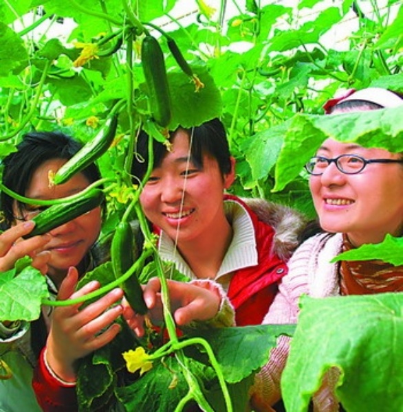 河北省唐山市丰润区把农业结构调整作为农民增收的重要手段,大力推广新型农业生产模式,使当地农民增收幅度连续5年达到10%以上。图为游客在大棚里采摘新鲜蔬菜。本报记者 雷汉发摄