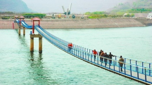 4月7日,游客在黄河小浪底水库参观。当日,黄河上最大的水利工程、“八五”期间国家重点建设项目小浪底水利枢纽工程顺利通过国家竣工验收。 苗秋闹摄(新华社发)