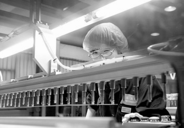 河北省保定英利集团抓住金融危机造成国际市场硅料价格大幅下降、光伏发电成本降低的机遇,利用自身品牌、质量、技术、管理优势,大力开拓国内外市场,2009年已接订单达400兆瓦,预计全年销量将比去年翻一番。 图为工人在保定英利集团的生产线上工作。 新华社记者 杨世尧摄