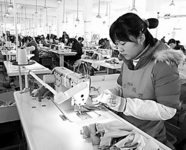 受国际金融危机影响,安徽省庐江县返乡农民工日益增多。为解决这些返乡农民工的就业问题,在政府积极推动与支持下,尧日服装有限公司吸收300多名返乡农民女工就业,培训2万名农村女青年走上就业岗位。 本报记者 白海星 通讯员 周跃东摄影报道