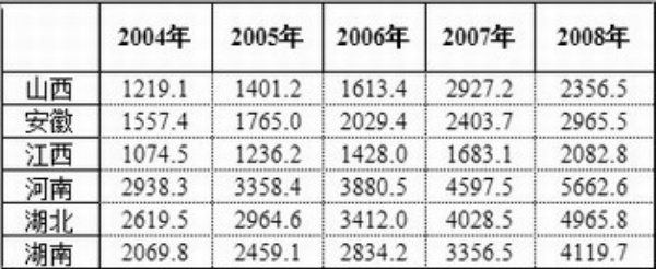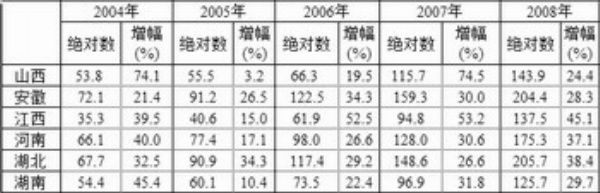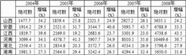 中部六省社会消费品零售总额增长情况(单位:亿元)