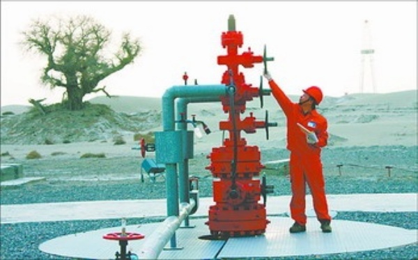 左图 工人在塔里木油田哈得作业区工作。哈得油田充分发挥勘探开发一体化的优势,在一期产能建设中,创造了“当年建设、当年投产、当年收回全部投资”的奇迹,已建成全国最大的沙漠油田。