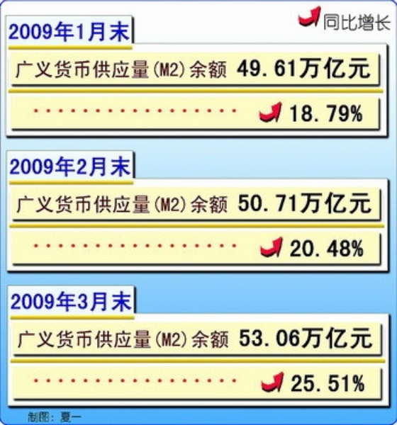 从央行发布的数据看,货币供应量大幅度增加,信贷资金正越来越多地进入实体经济,与财政资金、社会资金形成有力配合,货币政策的连续性和稳定性进一步增强,银行体系流动性充裕,货币信贷快速增长,保证了对经济发展的拉动作用。