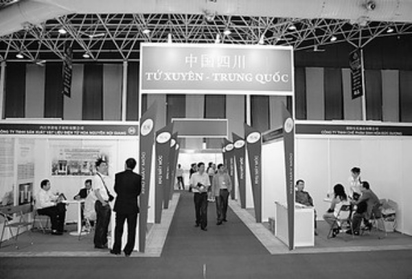 第19届越南国际贸易展览会日前在首都河内举行,为在国际金融危机下寻求商机,共有14个国家的厂商参展,中国四川、云南等地的企业展示了机械、轻工类产品等。图为四川展区一角。 本报驻河内记者 赵 青摄