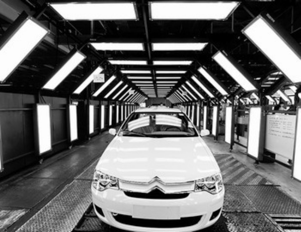 4月10日,东风汽车旗下的神龙汽车有限公司总装车间的新车在经过检测线。东风汽车有限公司一季度实现整车销售34.1万辆,相比2008年第四季度增长10.4%。 新华社记者 程 敏摄