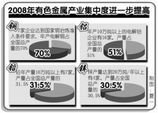 康义表示,当前有色金属工业协会将配合国家有关部门抓紧落实产品进出口调整政策,做好符合《铜冶炼行业准入条件》的大型铜冶炼企业的加工贸易试点工作;抓紧推进骨干电解铝企业直供电试点,逐步扩大试点企业范围,增强企业活力;促进企业重组,增强综合实力,鼓励有实力的铜、铝、铅、锌等企业以多种方式进行重组,实现规模化、集团化,提高竞争力。到2011年,要形成3—5个具有实力的综合性企业集团。