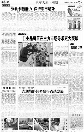 去年,吉利在第四季度逆市上扬,显示出强劲的生命力,迄今其汽车销售上牌量达到22万多辆,出口4万多辆,排行全国乘用车第9位。但在1.5升排量以下的汽车销售量中却排行第一,利税增长了11.4%,达到18亿,这样的业绩令同行称奇。