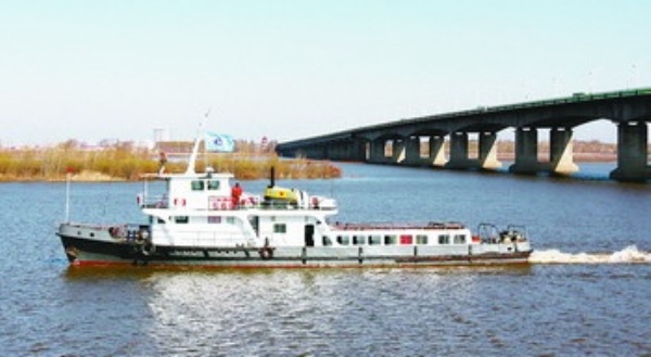 四月十五日,轮渡在松花江哈尔滨段航行。