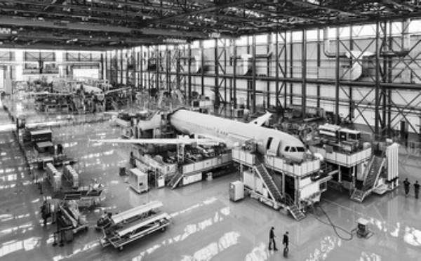 6月底,空客天津总装线生产的首架空客A320飞机将通过奇龙航空租赁公司交付给四川航空公司。目前,首架空客A320飞机已经完成了喷漆和发动机的安装工作,此外还有6架飞机也在同时进行总装。图为空客A320总装车间。 本报记者 康 华 通讯员 焦永普 摄影报道