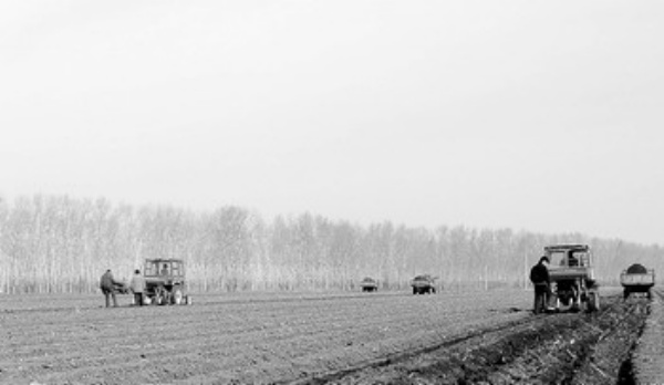 4月17日,黑龙江省肇东市五里明镇胜平村的农民使用滤水机播技术播种。 受3月份低温天气影响,“北大仓”黑龙江省近日开始春播。黑龙江省提出,如果不发生大的自然灾害,2009年该省粮食总产量预计将达到425亿公斤。 新华社记者 王春雨摄