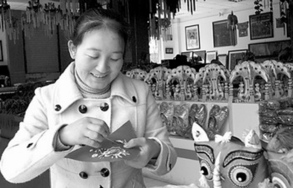 47岁的高清旺从17岁开始就在皮影表演的间隙跟着师傅学刻皮影,从事这一行已整整30年。“以前只是在农闲时才做做皮影,而且一般卖给表演皮影戏的艺人,根本没想到以后会拿它当饭碗,更没想到把它做成艺术品能这么受欢迎。”高清旺告诉记者,除了农忙那几天,自己现在一年大部分时间都在做皮影,有时女儿还能给他帮帮忙,这样算下来一年能有4万多元的收入。“在环县这个地方,做个小买卖一年也挣不了这么多钱呢!”高清旺对自己的收入很满意。