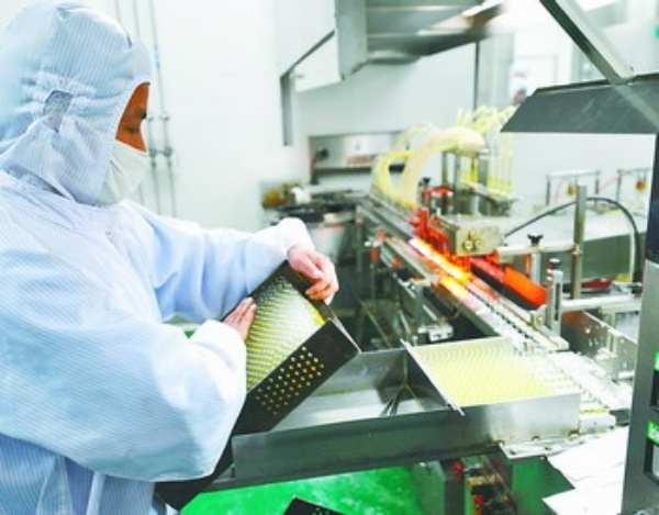图为苏州长征—欣凯制药有限公司工人在药品生产线操作。新华社记者 陈琪摄