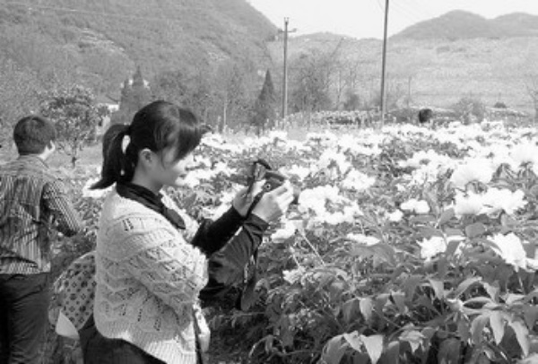 4月11日,来自合肥的游客们正在安徽铜陵凤凰山凤丹种植基地游玩。目前当地已有上万亩生态牡丹园,年产丹皮达1000多吨,产品大多销往海内外。 白海星 高城摄影报道