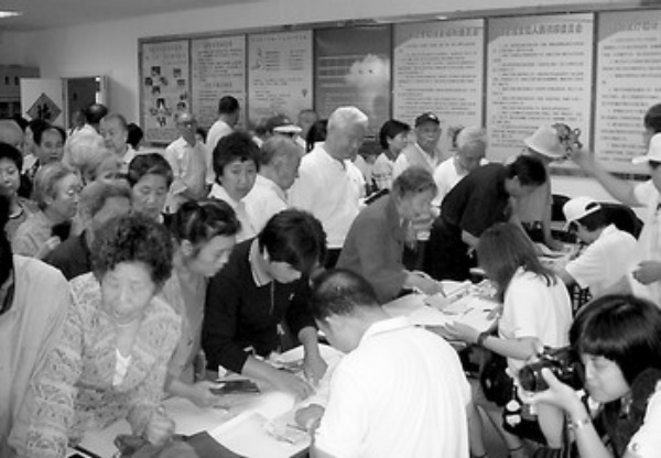 上图 东城区和平里街道小黄庄社区开展首轮“一元节能灯”换购工作,居民热情很高,购买踊跃。此次北京市高效照明产品推广活动范围覆盖北京市东城、西城、崇文、宣武四区,共计在居民家庭推广“一元节能灯”360余万只。