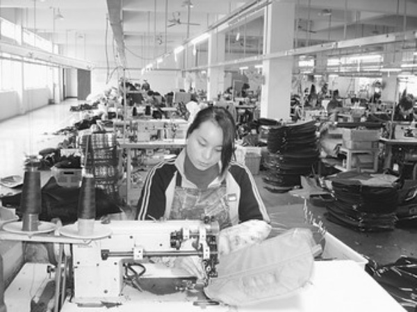 温州出口箱包的企业鹿城新兴实业有限公司订单不断,车间里工人们正忙着加工产品。2008年,企业完成产值1.5亿元。本报记者 张 玫摄
