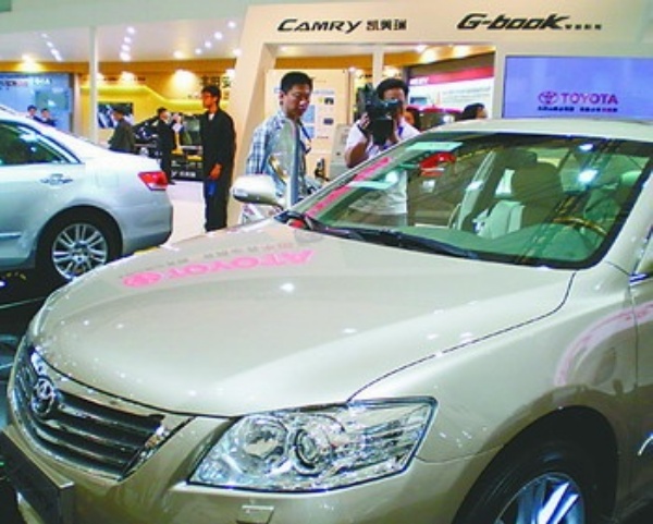 右图 广汽丰田新凯美瑞240V G—Book智能领航版亮相上海车展。本报记者 常艳军摄