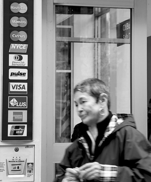 4月20日,在美国纽约,一名市民经过一家银行门口的各种信用卡标识。美国总统奥巴马首席经济顾问萨默斯19日表示,奥巴马近期将会出台政策,对信用卡行业的滥收费行为采取严厉措施。银行对信用卡收费的误导性条款迫使美国民众面临沉重的债务和飙升的还款利率。新华社发