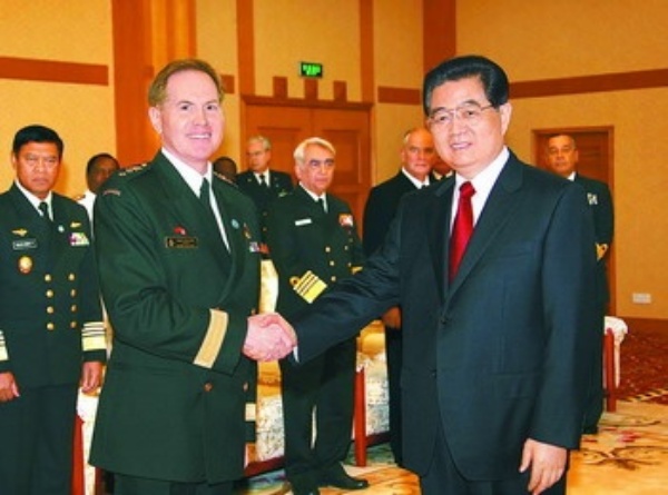 胡锦涛表示,中国将坚定不移地走和平发展道路,这是中国政府和人民秉承中华民族优秀文化传统和一贯的以和为贵的和平理念、根据时代发展潮流和自身根本利益作出的战略抉择。这条发展道路决定了中国必然坚持防御性的国防政策。不论现在还是将来,不论发展到什么程度,中国都永远不称霸,不搞军事扩张和军备竞赛,不会对任何国家构成军事威胁。包括中国人民解放军海军在内的中国军队,永远是维护世界和平、促进共同发展的重要力量。