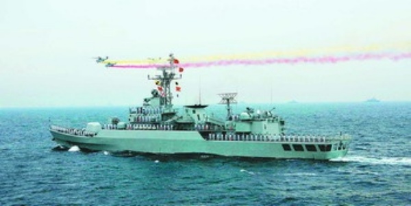 中国海军“洛阳”号导弹护卫舰接受检阅