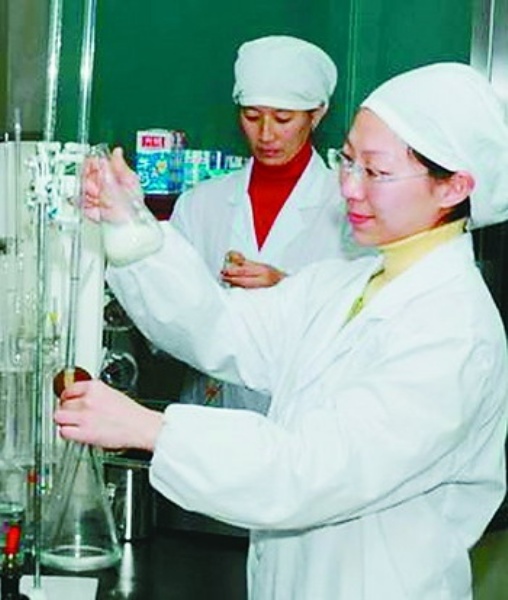 右图 光明乳业技术人员积极开展产品研发。 本报记者 暴媛媛摄