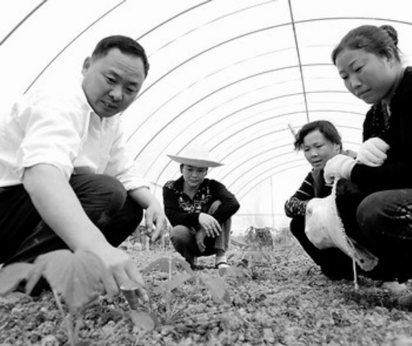 上图 4月23日,来自江苏镇江的劳模王柏生(左)正在指导绵竹市农民种植无公害草莓。王柏生被誉为“草莓大王”,他自己种植的3亩多地草莓年收入达10多万元。 在江苏省的统一部署下,该省的“草莓大王”“葡萄大王”等种植能手纷纷来到地震灾区四川省绵竹市,指导当地农民种植经济作物,增收致富。 新华社记者 陈燮摄