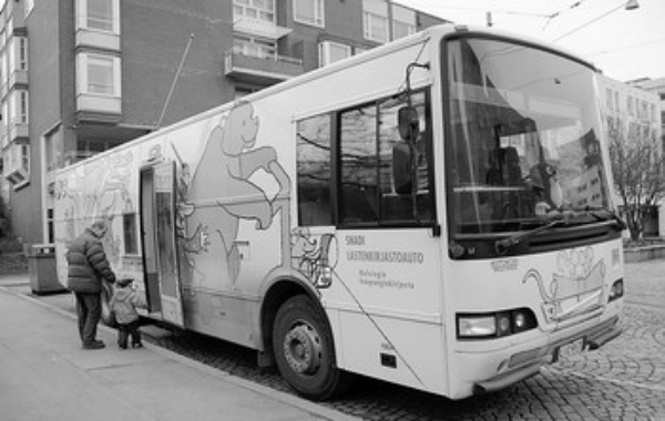 芬兰是世界上图书馆密度最大的国家之一,仅有530万人口的芬兰拥有近千个公共图书馆,人均占有图书馆的比例居世界前茅。芬兰全国完善的图书馆网络为所有人免费提供借阅服务,人性化的服务使芬兰成为世界上图书馆利用率最高的国家之一。这是在芬兰首都赫尔辛基,一名家长牵着孩子登上儿童流动图书车。赫尔辛基市图书总馆的儿童流动图书馆每天下午轮流到分布在赫尔辛基市的11个流动图书站为小读者们服务。新华社发