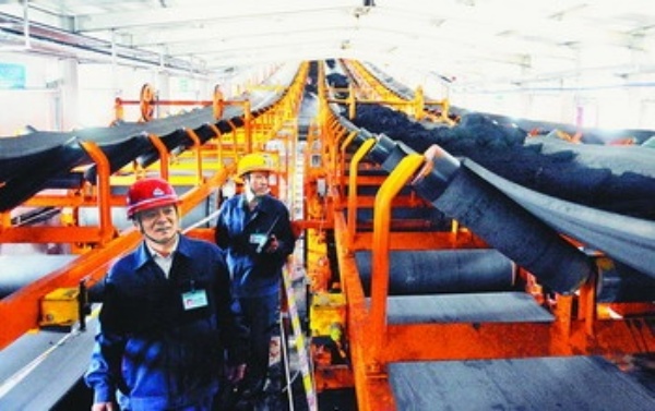 4月27日,两名工人在洗煤车间巡视。日前,有“塞上梅花第一井”之称的宁夏神华宁煤集团梅花井煤矿开始出煤。这家煤矿井田内含煤地层厚度299米,地质储量25亿吨,矿井总投资34.6亿元,煤矿生产能力在2013年将达到1200万吨。新华社记者 刘泉龙摄