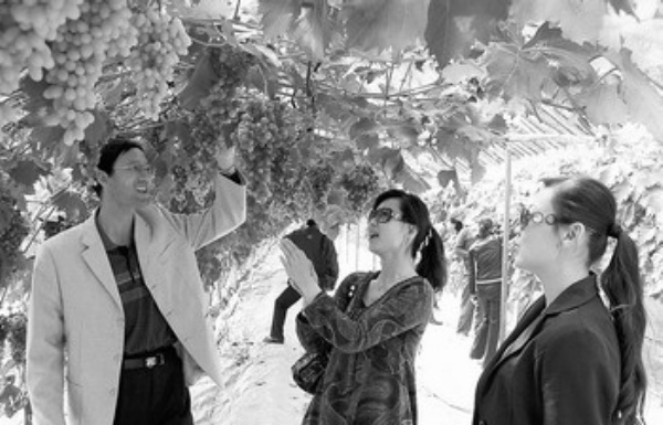 近日,甘肃玉门市温室“葡萄长廊”里的葡萄、油桃成熟,吸引了众多游客。玉门市大力发展高效农业、观光农业、生态农业,带动了当地特色农业的发展。本报记者 李琛奇 通讯员 方圆摄影报道