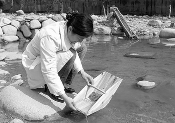 金池淘金是这里的特色旅游项目。尹子环蹲在池旁,手持仿古淘金斗,满满地捞上一把,细细扒拉,发现了一粒金沙,高兴的笑容盛满整个脸庞,“你看,阳光照在沙滩上,一闪一闪,这不正验证了‘是金子总会发光’这句老话吗?来这试试手气,绝对让你不虚此行。”