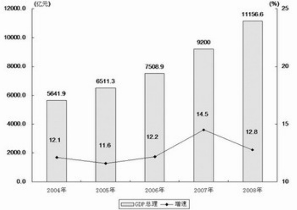 透过繁荣的景象,一连串令人振奋的数据更是展示了湖南在富民强省路上科学跨越的信心:2008年,湖南地区生产总值首次突破万亿元,达到11156.6亿元,是3年前的1.7倍。