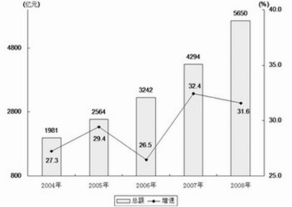 从2004年到2008年,湖南省固定资产投资增长稳定在26.5%以上,年投资规模从1980亿元上升到5650亿元。在高强度的投入下,岳阳1000万吨炼化一体化、桃花江核电站前期施工、湘钢5米宽厚板等一批重点项目开工建设,基础产业、基础设施建设不断加强。